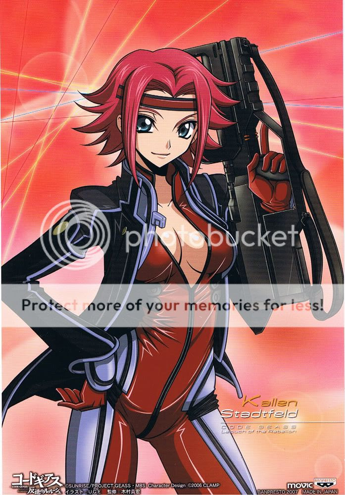 Kallen é uma piloto extremamente habilidosa, da Knightmare Frame, e faz rivalidade com os Knights of Rounds. Ela é reconhecida como a melhor piloto do Black Knights por inimigos e aliados. Seu codinome, "Q-1", faz referências, em notação algébrica, do jogo xadrez, as quais se referem á peça do jogo Rainha, a mais poderosa no xadrez. Por aí, já deu pra perceber que é uma guerreira extremamente forte.